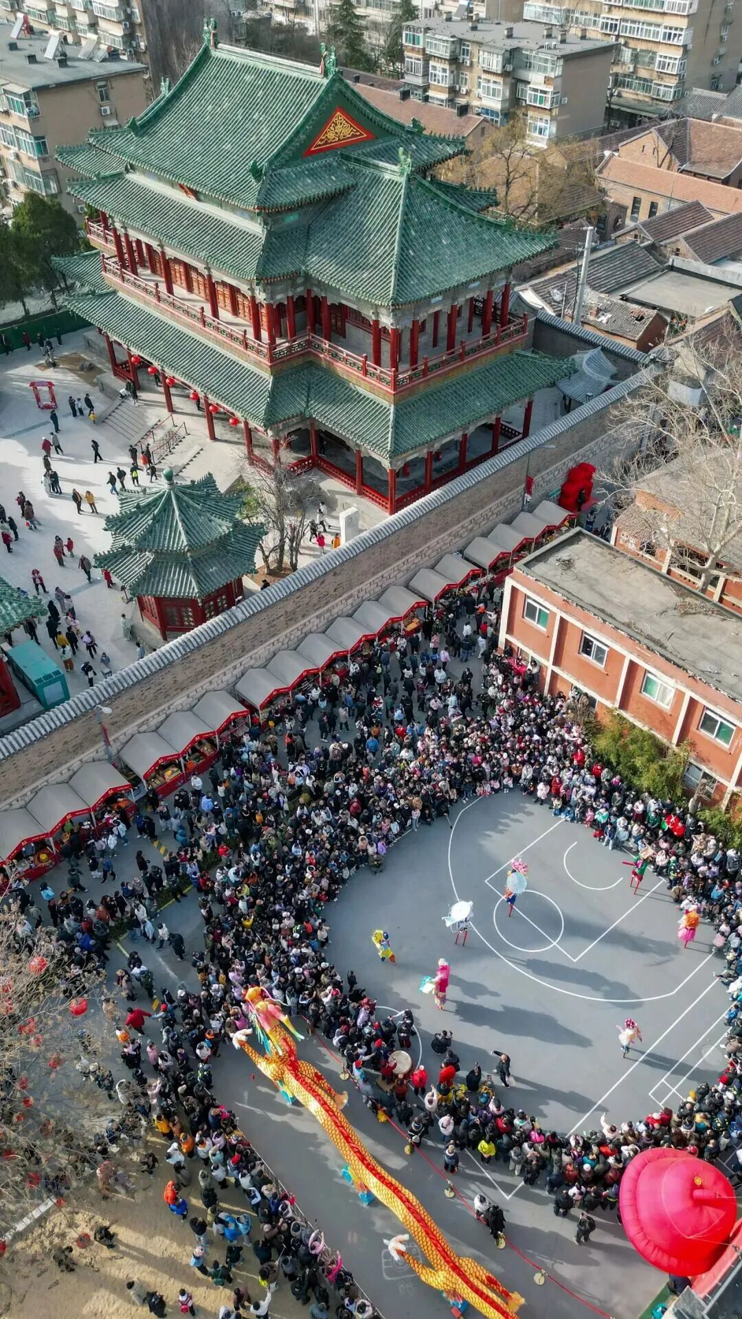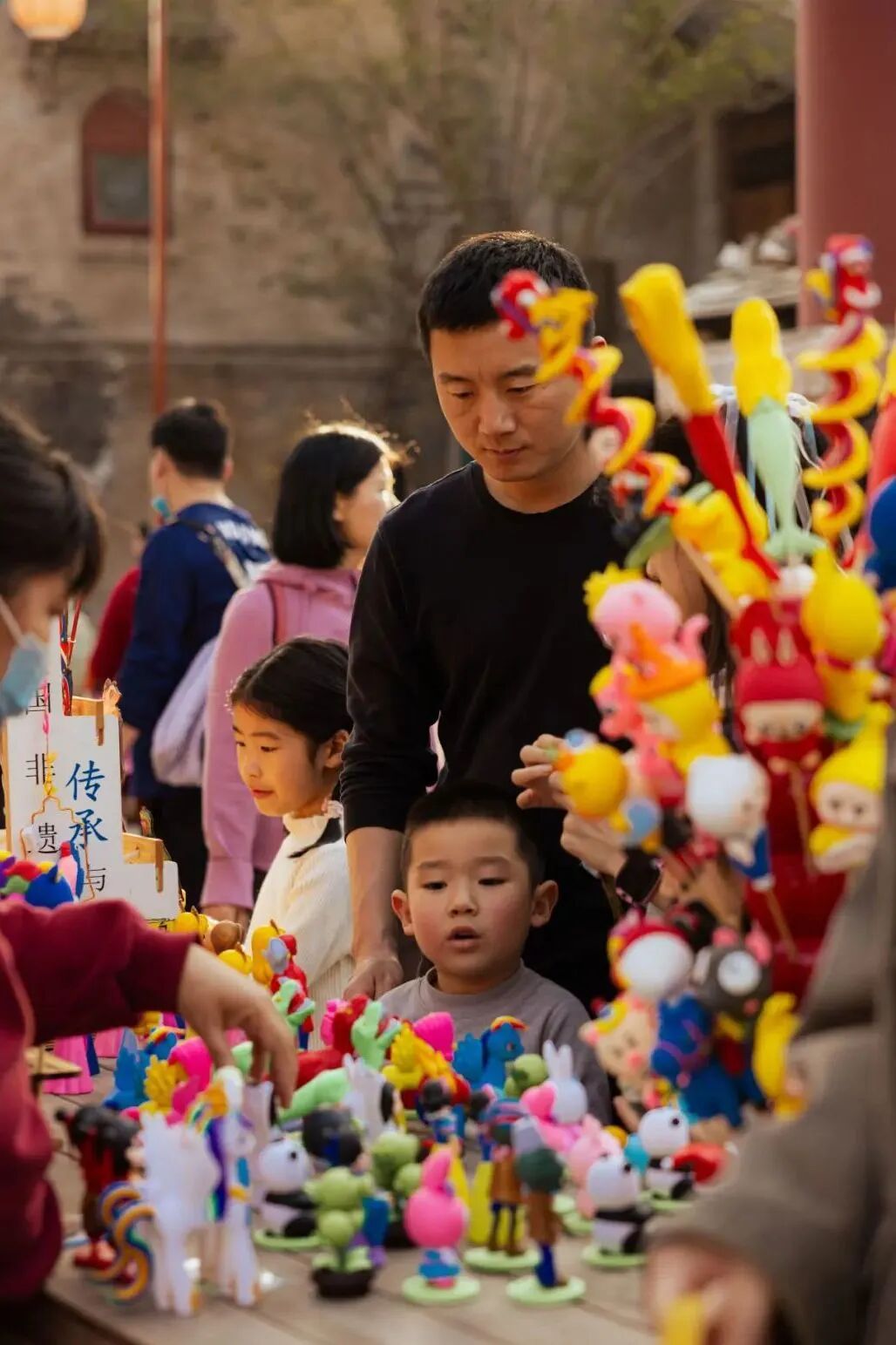 非遗舞龙表演、马年限定光影秀,璀璨光影里,满是古城浪漫;非遗市集上,鲁绣、面塑等手作工坊能亲手解锁新春福礼,街巷间的泉水甜沫、现炸油旋、冰糖葫芦等特色美食,更是把烟火福气融进舌尖。