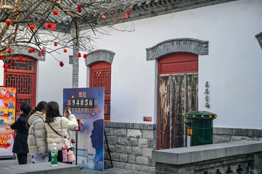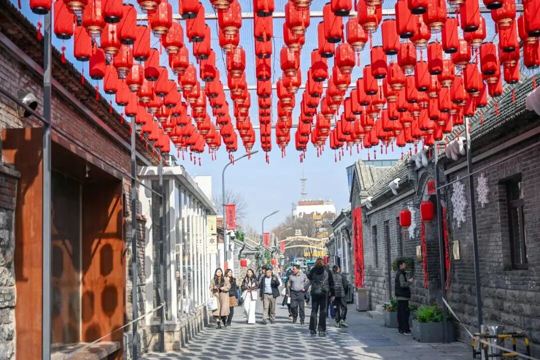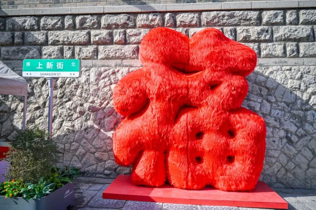 这次飞翔的鳌鱼的“老家”,位于济南上新街。春节假期,上新街弥漫着浓浓的年味与新意,街区人潮涌动,火红的灯笼、精巧的中国结、巨大的毛绒福字,共同烘托出喜庆祥和的迎新氛围。