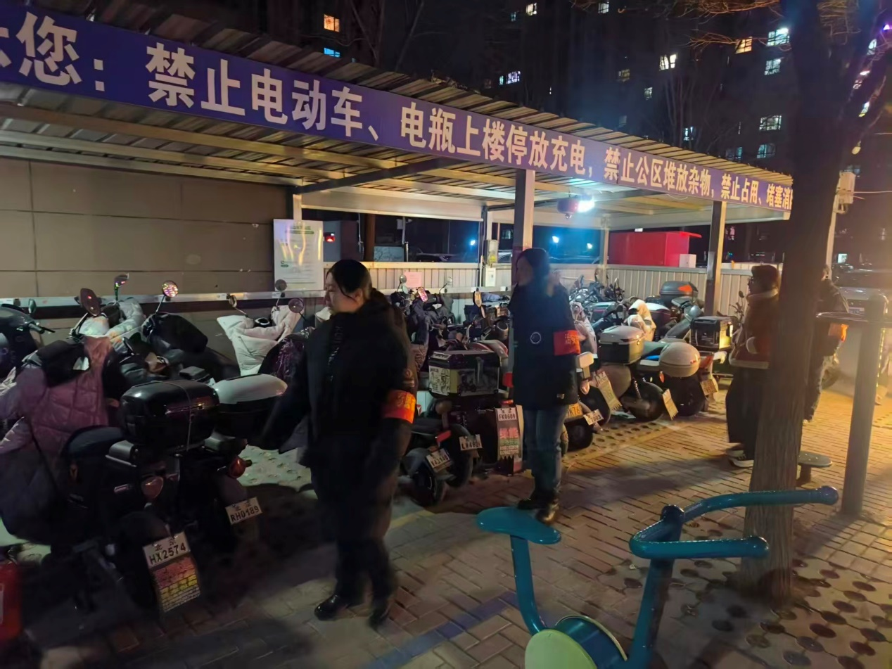 工作人员深入小区院落、平房区等重点区域,紧盯垃圾桶站、电动车充电棚等关键点位,细致排查消防设施完好度、用电用气安全、飞线充电、堆物堆料等安全隐患。对巡查发现的违规行为,第一时间上门劝阻、讲解安全风险,协助居民现场整改。同时,各社区针对性加大夜间、人流高峰等重点时段的巡逻频次,以不间断值守筑牢节日安全屏障,让辖区居民安心过年、放心团圆。