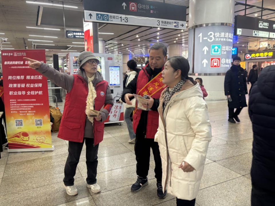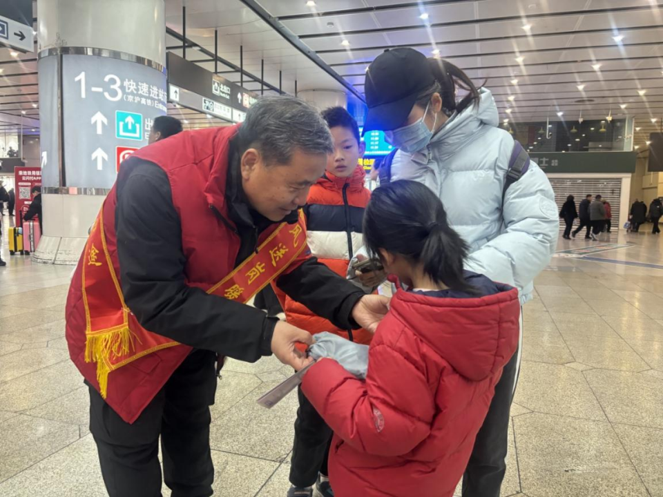 这支由社区党员、热心居民组成的志愿服务队,堪称北京南站周边的“活地图”,队员们熟记站内换乘路线及周边30余条公交线路、景点分布,提前备好交通示意图,只为给游客提供最精准的指引服务。他们放弃春节休假,每日按时到岗,在车站出入口、换乘通道、公交接驳点等重点区域设立服务岗,主动上前询问游客需求,手把手指引路线,细致讲解换乘流程,遇到行动不便的老人、携带孩童的旅客,还会主动帮忙搬运行李,用点滴行动传递温暖。