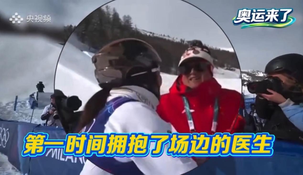 2022年北京冬奥会徐梦桃夺冠后与运动医学科主任王健全合影