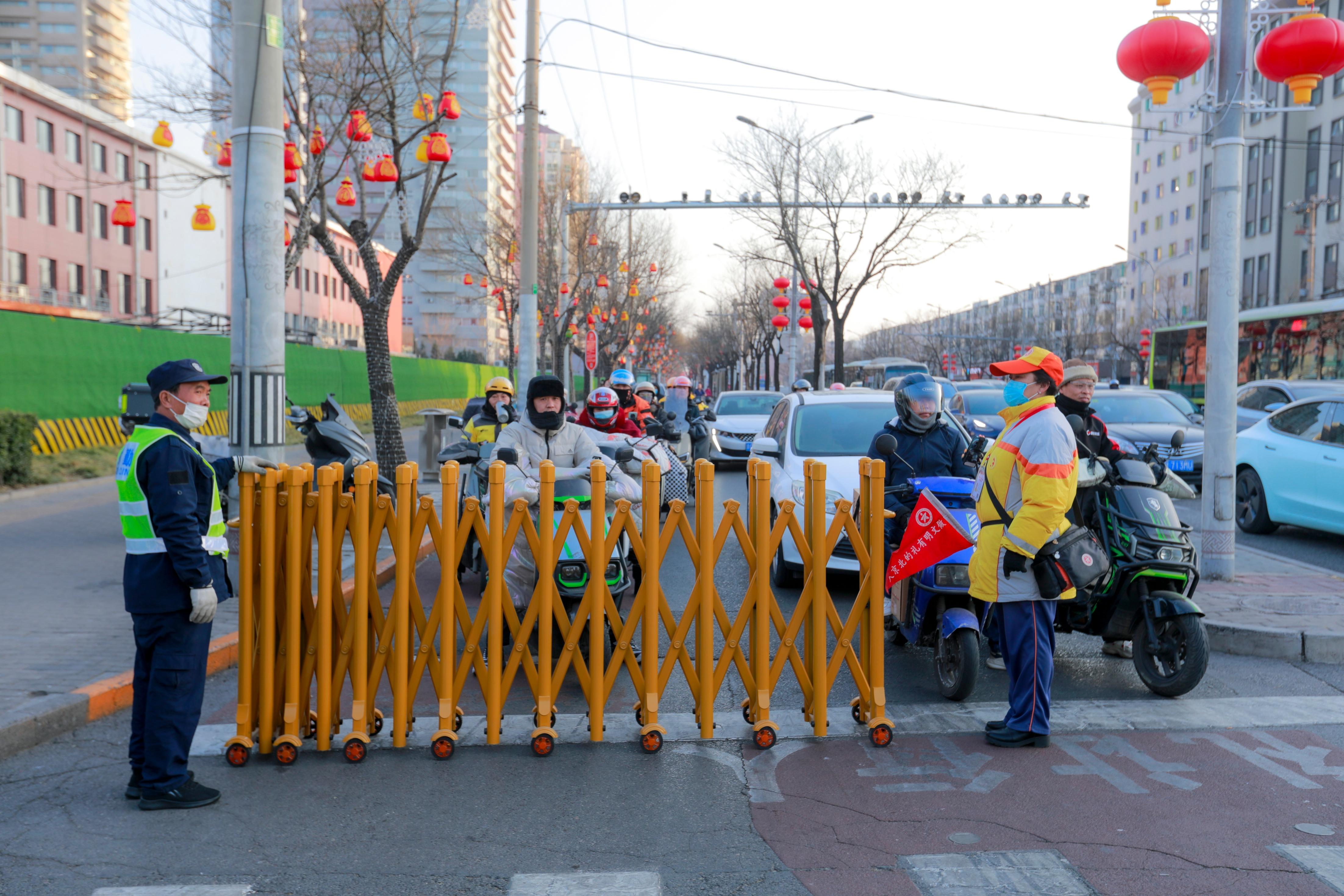 大山子路口作为治理重点,此次治理本着压事故、整秩序、降违法的原则,街道精准把握路口交通流量规律,联合朝阳交通支队机场交通大队在大山子路口首都机场辅路方向、大山子路口酒仙桥北路(望京街)从北向南方向、酒仙桥路和酒仙桥北路交叉口设置可移动伸缩护栏,结合物理隔离与动态管理实现精准管控。可移动伸缩护栏可根据非机动车流量手动调整开合距离,通过物理隔离将非机动车道与机动车道清晰分隔,有效避免人车混行,强化安全保障。