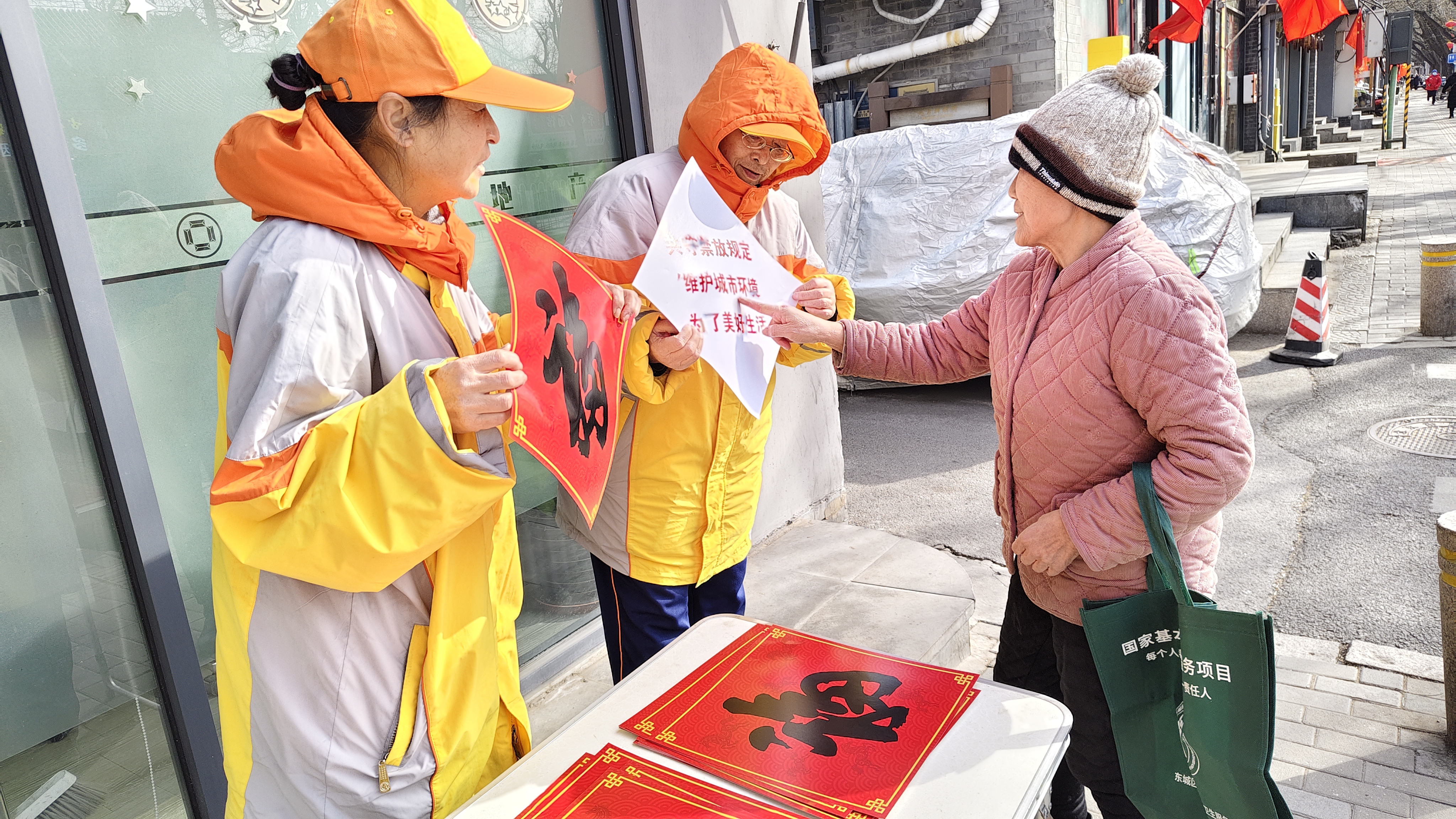 除夕之夜,万家团圆、灯火通明。引导员们自愿放弃与家人围守年夜饭的温馨时刻,化身平安守护者与新春送福人,走街串巷宣传禁放规定,细致讲解安全注意事项,同时将一张张福字送到居民手中,把平安守护与新春祝福送到百姓家门口,让年味更浓、心安更足。