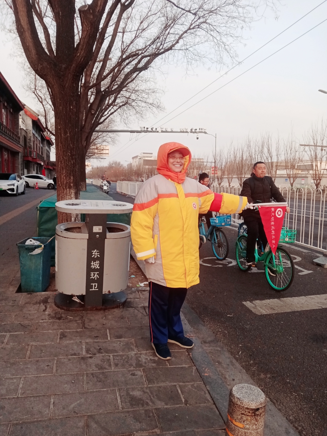 从初三至初七,引导员们佩戴治安巡逻袖标,扎根交南大街、南锣鼓巷等重点区域,持续开展志愿服务。在路口引导游客文明出行、遵守交规;耐心劝导机动车礼让行人、规范行驶;主动整理、码放乱停的共享单车,及时劝阻乱扔垃圾等不文明行为;全天候值守巡逻,维护街巷环境秩序,保障市民与游客出行顺畅、安全舒心。