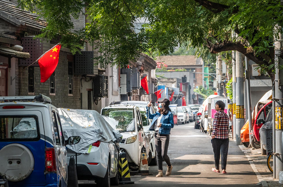 胡同的烟火:红旗、行人,都是生活最真实的样子。