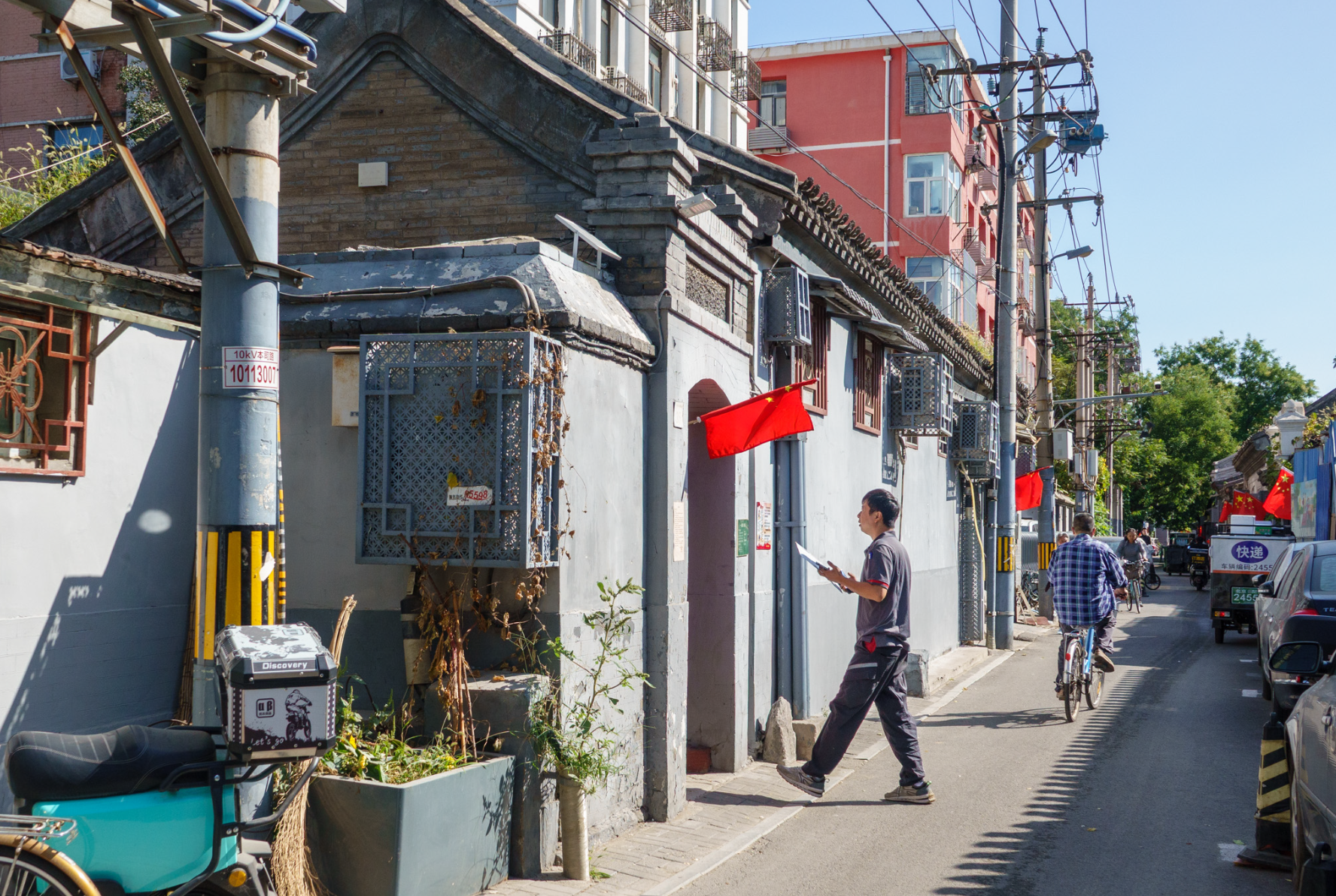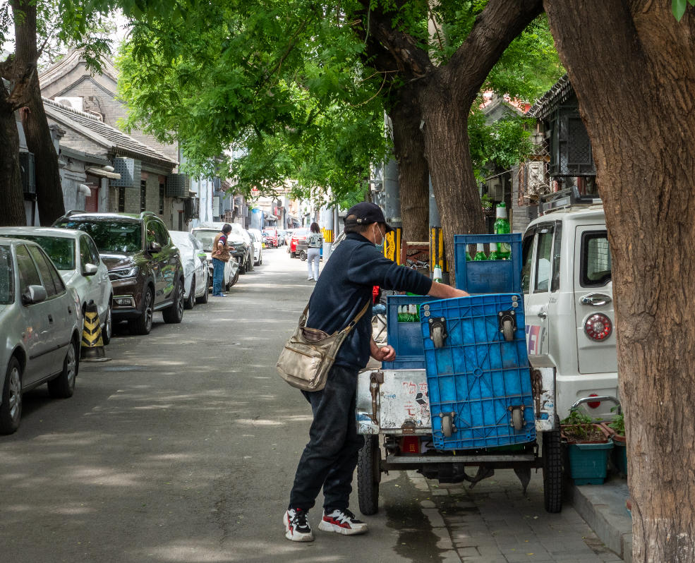 日常的脚步:有人忙于送快递,有人紧着往家赶,胡同是永远的背景板。
