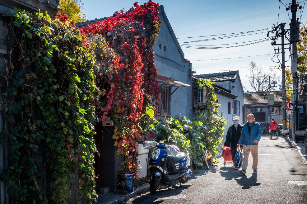 秋染灯草: 爬山虎把墙染成了红,胡同也跟着暖了起来。