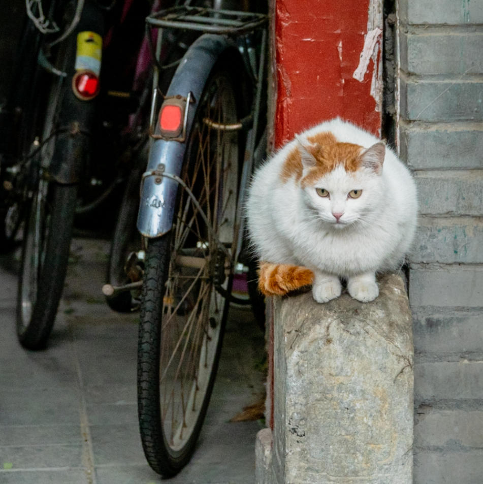 门墩上的守望者:一只猫蹲在门墩上,替我们守着胡同的晨昏。