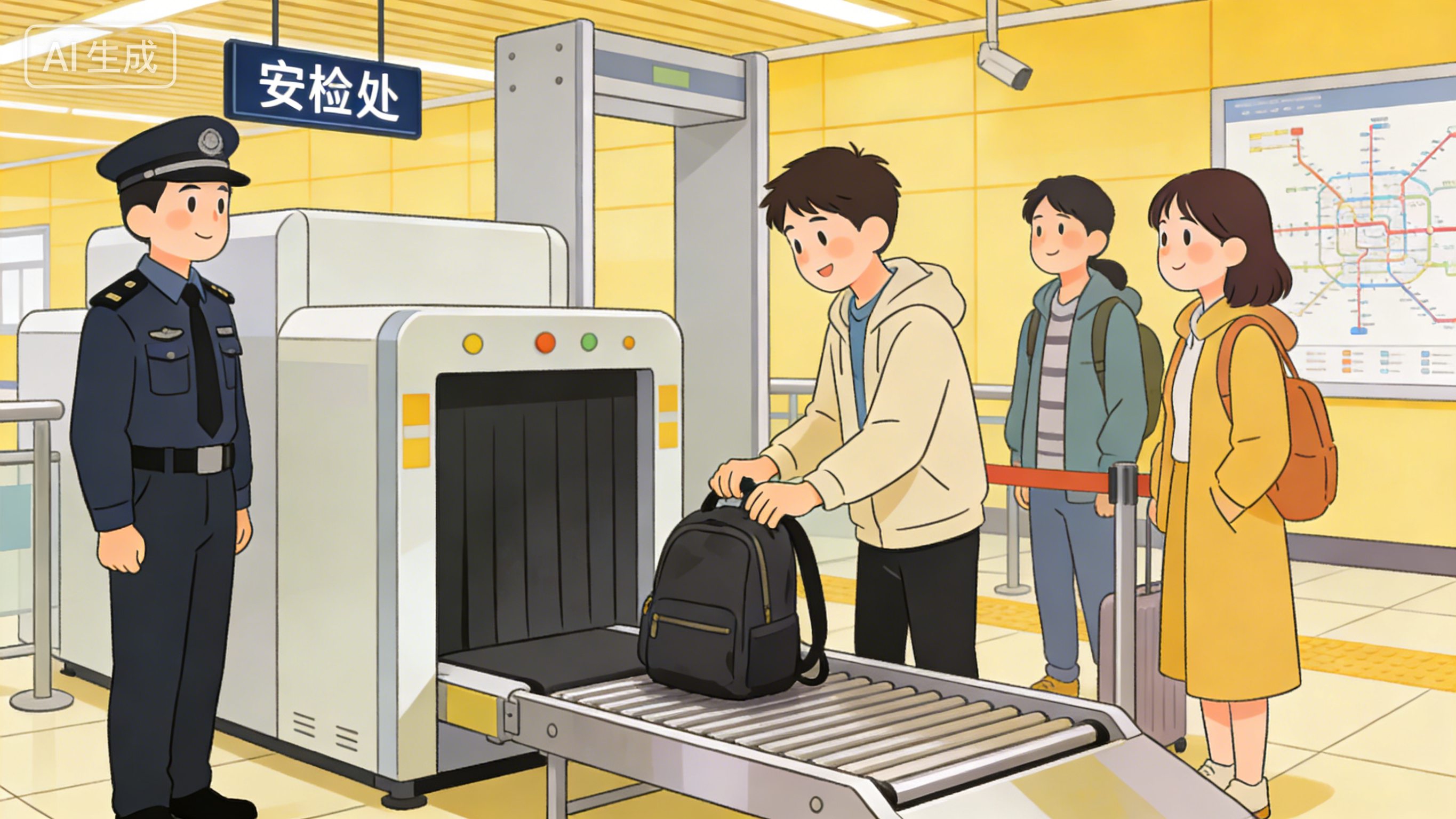 行李通过的通道式安检机,使用低剂量的X射线扫描行李内部,属于电离辐射。但其辐射源被严格封装在带有铅屏蔽的机身内部,并配有铅帘等防护结构。即使站在安检机旁,人体实际接受的辐射剂量也微乎其微。