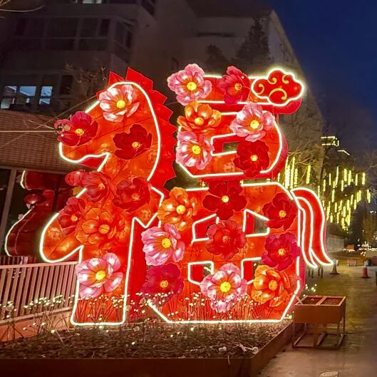 一匹由福彩花灯勾勒的骏马