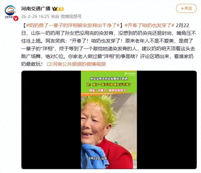 网友笑疯:“开春了!咱奶也发芽了!原来老年人不是不爱美,是攒了一辈子的“洋相”,终于等到了一个敢给她递染发膏的人,建议奶奶明天顶着这头去跳广场舞,绝对C位。