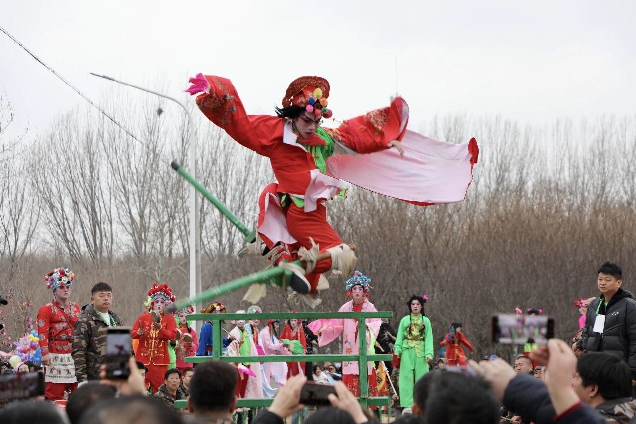 活动现场,太子务武吵子、石垡高跷、少儿高跷、舞龙舞狮、小车会、威风锣鼓等本土非遗与传统民俗项目轮番上演。演员们身着彩衣、步伐灵动,一招一式尽显京南民俗底蕴,传递新春祝福,引得村民与游客驻足围观、掌声不断。本次花会采取进村巡演形式,把文化舞台搭进村庄,让群众在家门口尽享非遗魅力,切实增强文化获得感与幸福感。