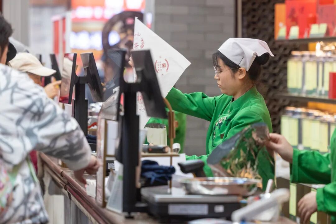 正月的北京,寒意未消,大栅栏街上的红灯笼高高悬挂,年味在街角巷陌间愈发醇厚。张一元茶庄总店门前,熟悉的茉莉花香裹挟着暖意扑面而来,排队购茶的人群中,既有白发苍苍的老者,也有中年模样的居家女主人,更有背着双肩包的年轻人。他们手中拎着的纸包茶叶,层层叠叠裹着的不仅是鲜灵的茶香,更是老北京人绵延三代的亲情记忆,也是百年品牌守正创新的岁月沉淀。新春正盛,这缕穿越时光的茉莉香,已然成为串联起老中青三代人生活的情感纽带,让年味在氤氲茶香中愈发绵长厚重。