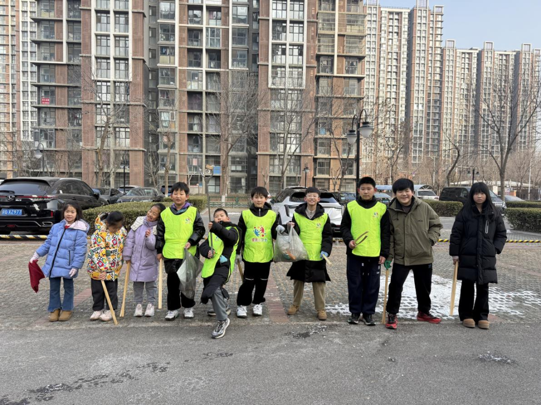 大家分工合作、默契配合,不畏严寒、热情饱满,经过认真劳动,小区环境焕然一新,健身器材洁净如新。孩子们看着清理成果,脸上洋溢着成就感与自豪感。