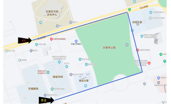 演出路线:表演队伍从文山东路文登区委、区政府路口起,向东经“文登学”雕塑行至财富大厦路口,向南行进至天福路,右转穿行文登学公园,向西行进至通和路止。