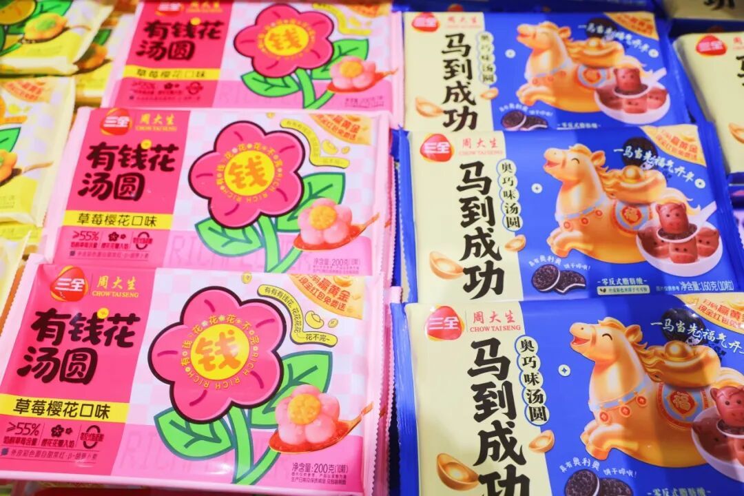 在永辉超市卧龙悦购店,销售专区推出了近50种口味的产品,仿佛进入了一个元宵、汤圆的“万花筒”,散装元宵可以随心搭配、自由挑选,同样提供试吃服务。盒装汤圆的选择更是多元,“马到成功”等承载美好寓意的造型款让人爱不释手,各种水果创意口味,以及山药五红、山药五黑等兼顾美味与健康的特色新品,满足了不同消费者的需求。