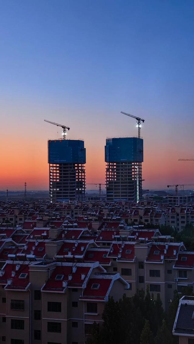 晨光中的双塔,见证小城新高度。