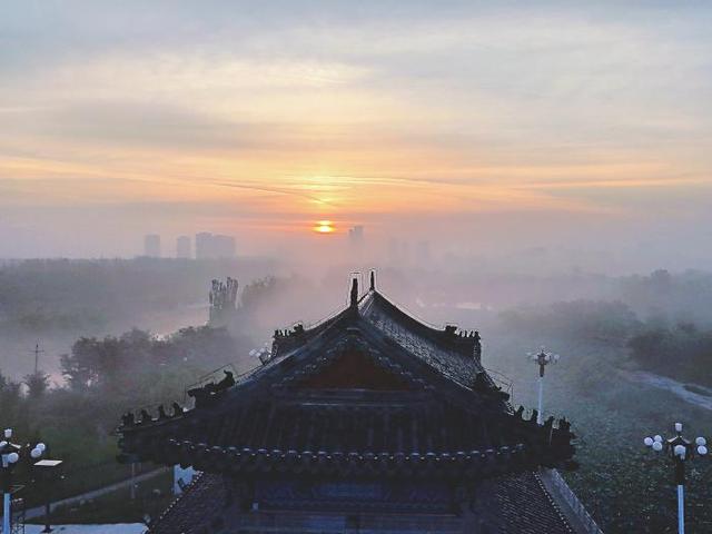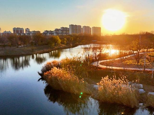 古城墙衔落日,一河金波漫过秋光。