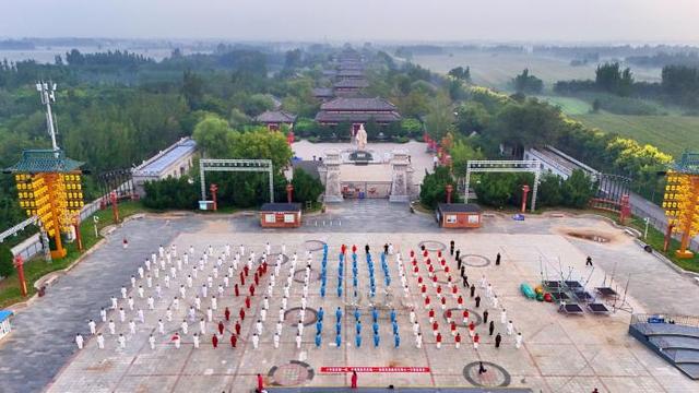 咱惠民孙子兵法城门口,这晨练阵仗也太壮观了。