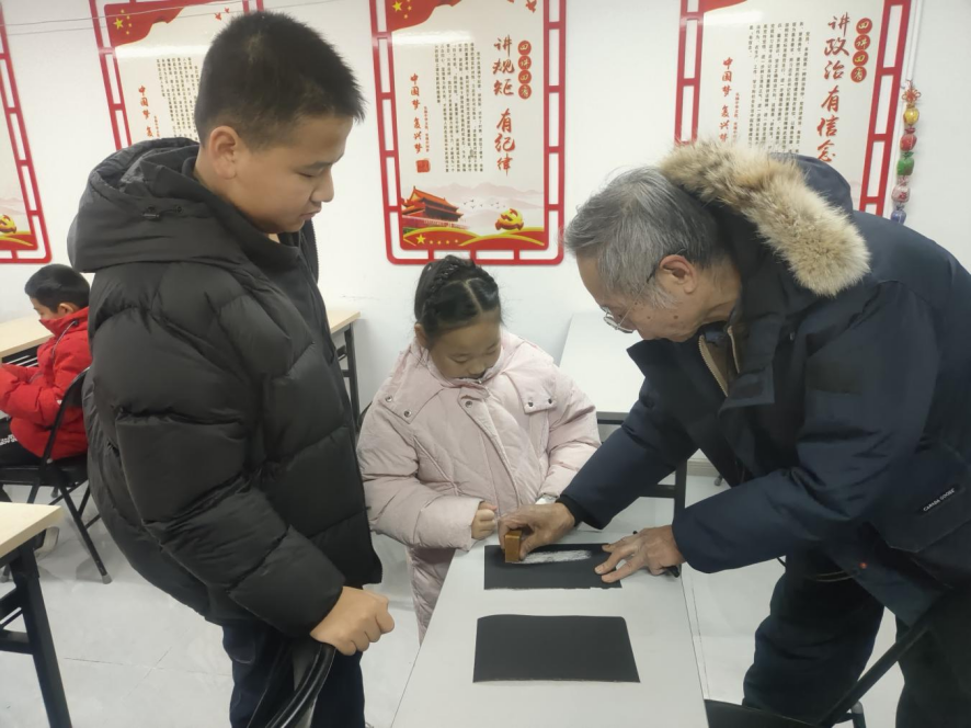 在老师的耐心指导下,大家逐步掌握技巧,完成了各具特色的篆刻作品,现场洋溢着浓厚的艺术氛围。“原来篆刻这么有意思!”“我要把这个印章盖在我的寒假作业本上。”此次活动不仅让孩子们体验了篆刻技艺,更让非遗文化在他们的心中落地生根。