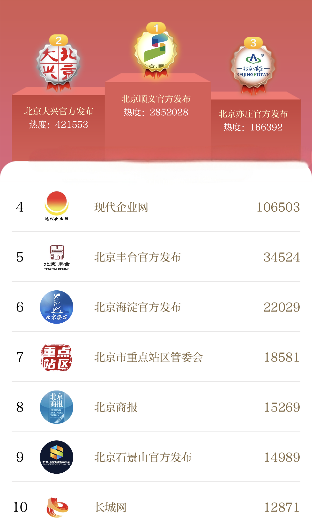 北京号一周人气Top10新鲜出炉啦