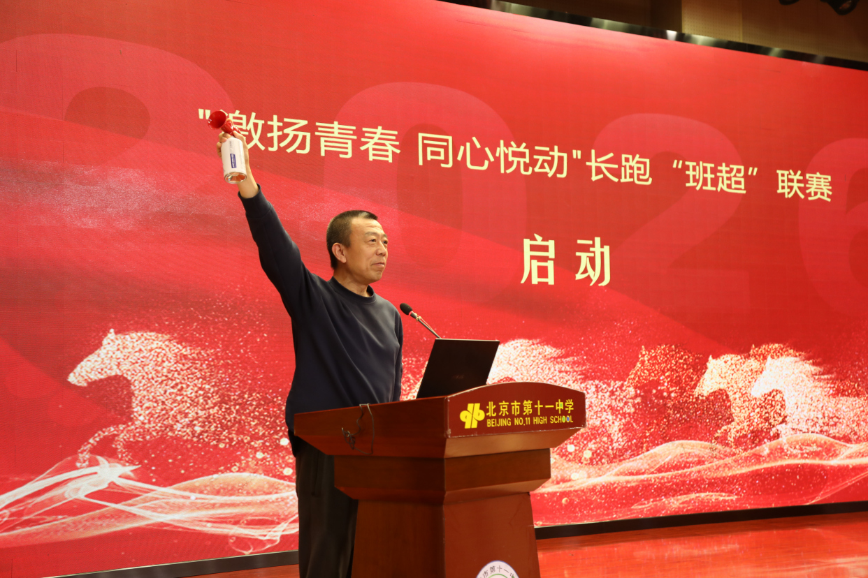 “同学们,新学期第二周我们将开展长跑班超联赛,初中每班以整队完成1200米,高中完成1600米!”在北京市第十一中学开学典礼上,学校公布了班超联赛的比赛方式。值得一提的是,每班将邀请一位任课老师参与班级赛。现场沸腾起来,同学们马上商议要邀请哪位老师参赛。