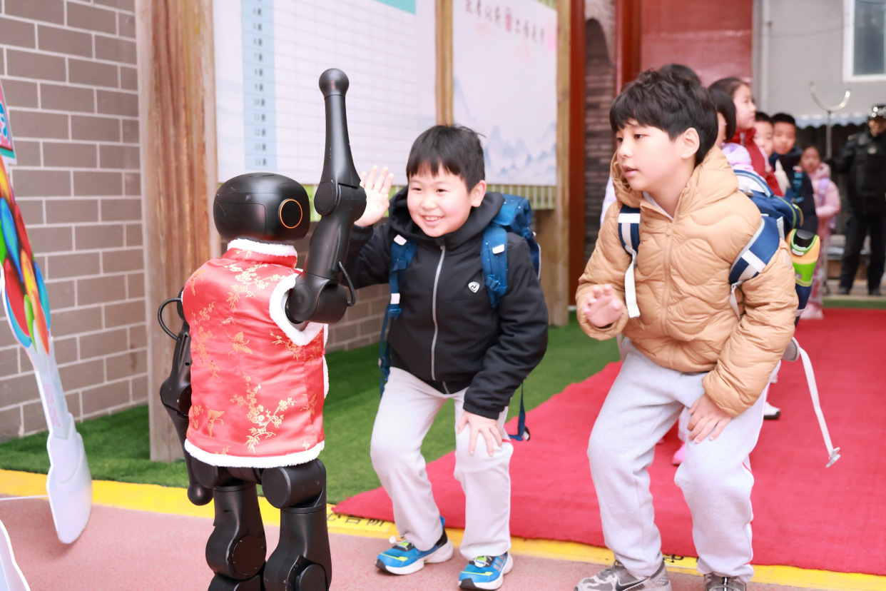 关注学生心理健康同样重要。新学期,东城区府学胡同小学心理机器人“小智”与同学们初次见面。未来,它将在教学楼内“巡航”,随时为需要心理调节、缓解压力的同学提供帮助。它不仅能与人展开对话,还能举起机械手臂进行拥抱,给学生陪伴与安抚。在开学典礼上,跆拳道社团的学生与智能机器人同台表演,完成了侧踢、击破等一系列动作,力量与精度、人文精神与科技之美的交相辉映,赢得全场热烈掌声。