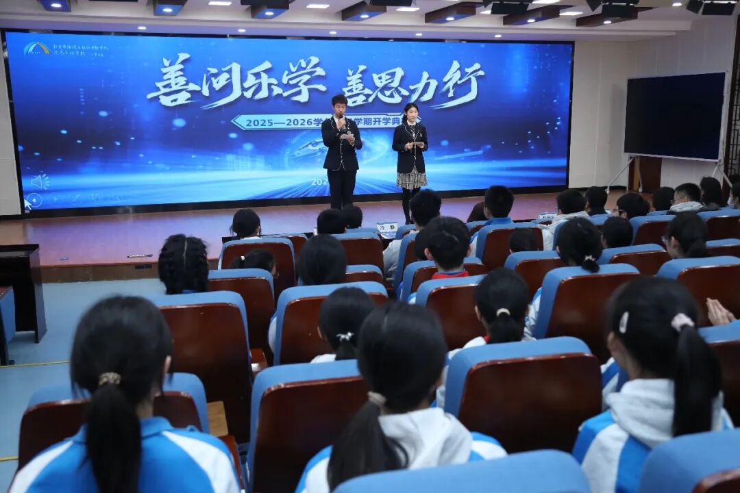 刚赢下比赛的四年级学生杨浩桐兴奋地说:“踢足球不仅能锻炼身体,也让我跑得更快。新学期我想在体育上更有进步!”随后,学校举行“感恩成长 健康第一 拼搏追梦 少年笃行”主题开学典礼,通过视频混剪、运动小将现场展示、AI互动发布等形式,揭晓本学期多项体育赛事安排。