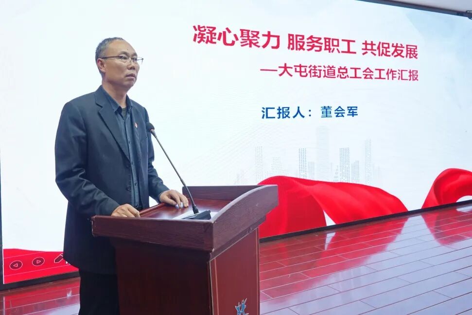 活动中,大屯街道总工会主席董会军以“凝心聚力 服务职工 共促发展”为题,围绕“家”的理念,系统展示了街道总工会如何将党的意志、党的温暖,通过组织覆盖、权益维护、精准服务,切实传递到辖区4.3万余名职工手中、心中,深刻体现了“党建引领”在凝聚人心、巩固根基中的“纽带”作用。