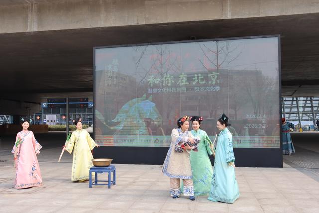 依托清河站区开阔的户外空间,老舍先生的自传体经典《正红旗下》,“洗三”“顺顺当当”两个选段也接连登场,将老北京的民俗风情生动铺展在观众眼前。“洗三”选段中,演员们凭借诙谐风趣的台词、轻快灵动的唱腔,还原老北京新生儿洗礼的传统习俗,引得现场阵阵欢笑;“顺顺当当”的旋律轻快明朗,演员们与观众挥手互动,齐声传递吉祥祝愿,将现场气氛推向高潮。市民旅客拿出手机记录精彩瞬间,孩童们好奇地驻足凝望,老人们则轻声跟着哼唱,熟悉的京味儿唱腔勾起心底的温情。