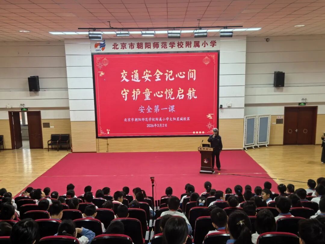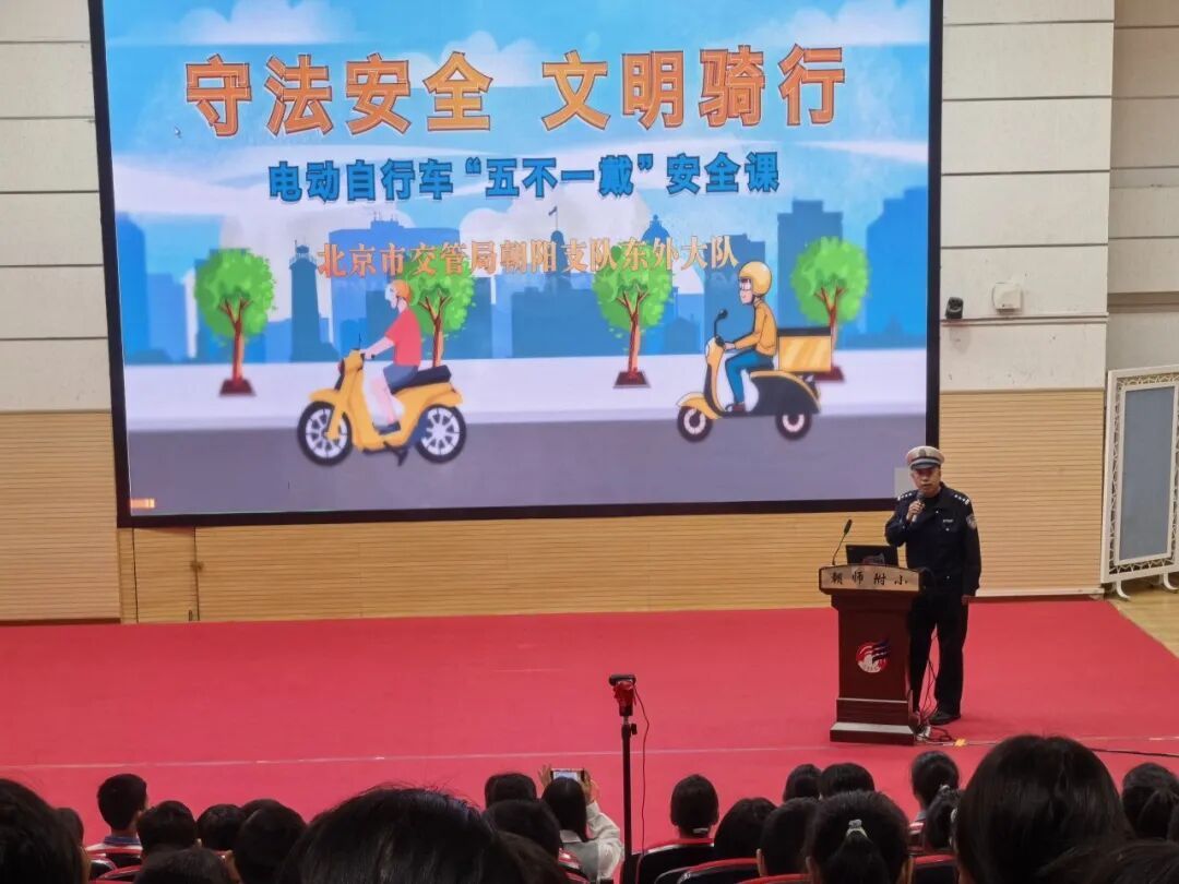 随着开学典礼,东外交通大队的胡建军警官便马不停蹄地走进朝阳师范学校附属小学太阳星城校区,为200余名小学生带来了一堂别开生面的“守法安全 文明骑行”安全小课堂。