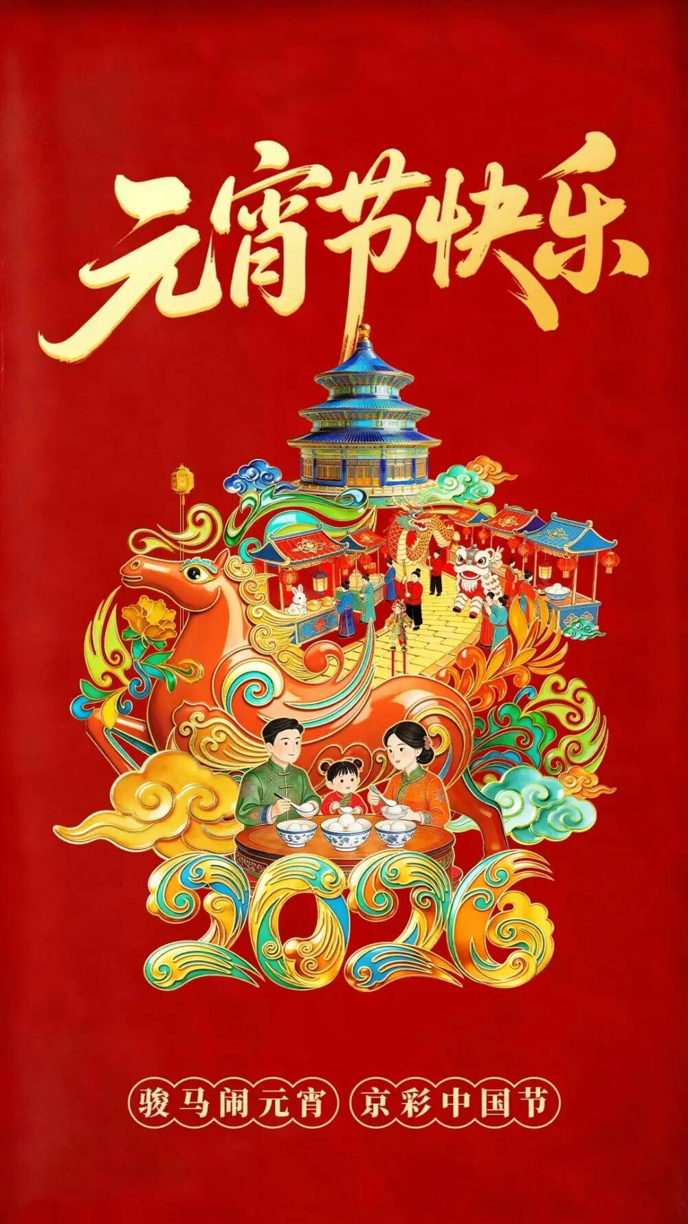 近日,北京市委宣传部指导市委网信办携手各大平台匠心推出“骏马闹元宵 京彩中国节”主题贺卡,方寸之间,尽展国风气韵与京城风采,每一幅都藏着美好寓意。元宵年年甜,愿生活甜蜜幸福。元宵喜乐,传递喜庆与祥和。骏马奔腾,寓意新岁一往无前、奔赴美好。