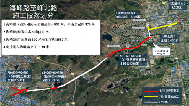 ③海峰路(广远路西300米至宅库街)施工路段长度约1550米,广远路以西路段北半幅封闭,南半幅双向通行;广远路至宅库街路段南半幅封闭,北半幅双向通行;过路段采取半幅封闭交替施工方式。