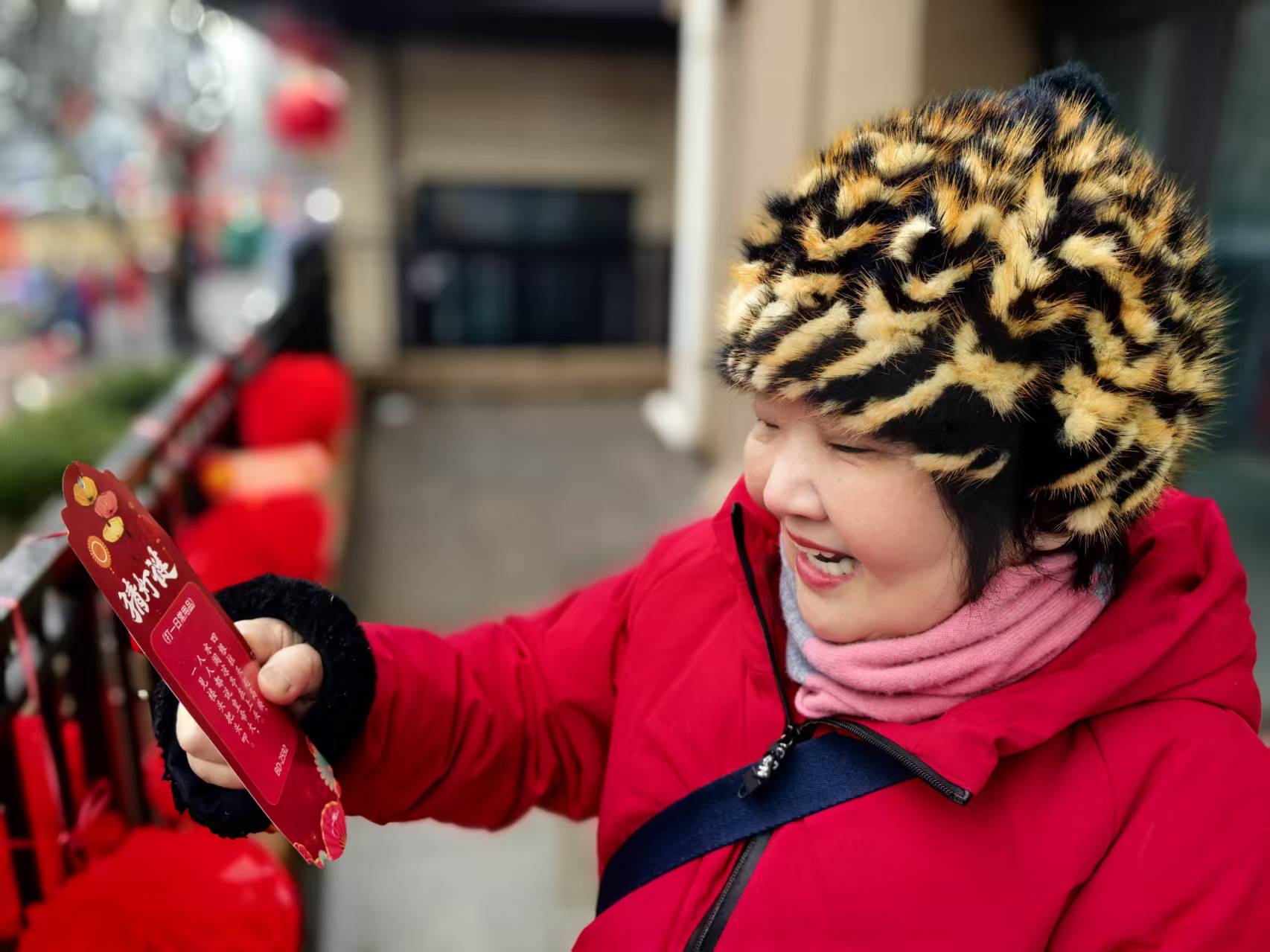 “这个我知道!‘白糖梅子真稀奇’打一食物,不就是咱手里的元宵嘛!”大家仰头读题或低头沉思,你一言我一语,现场欢声笑语不断,猜的不只是谜底,更是那份久违的、热热闹闹的邻里情。