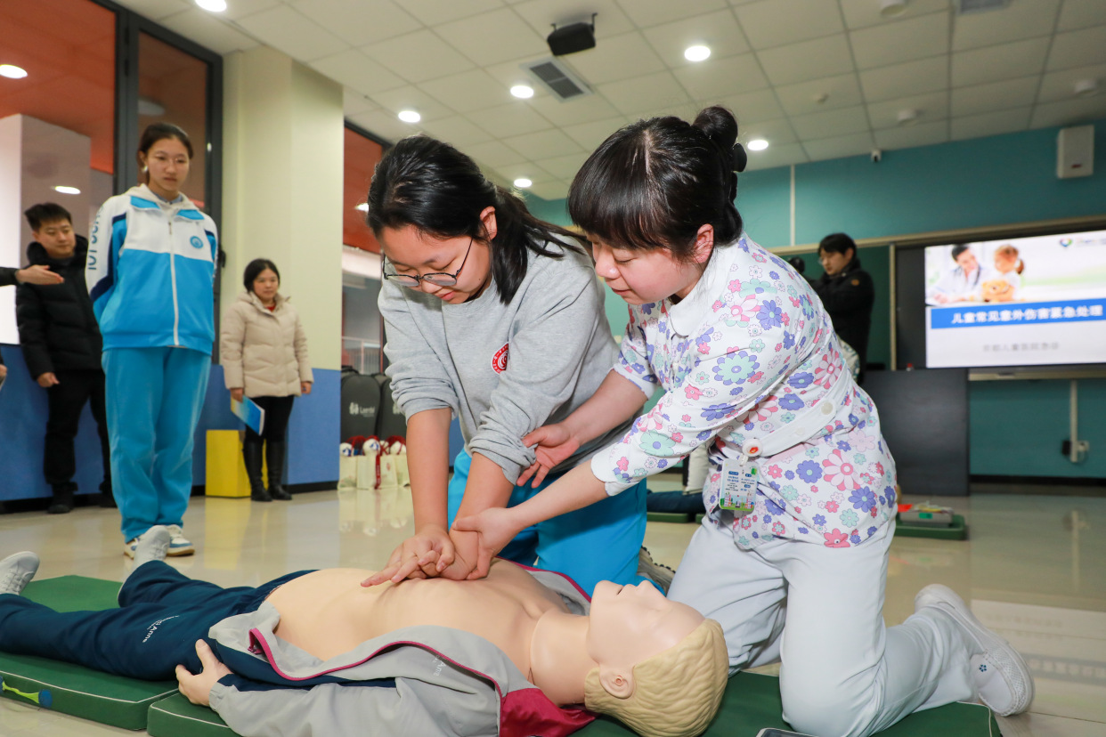 当天,初三年级学生跟随京都儿童医院护士长刘春梅走进心肺复苏的实操课堂,学习急救原则,以及胸外按压、人工呼吸等技能;北京京瓦农业科技创新中心博士何志伟从常见食品安全问题入手,讲解食品卫生与健康知识;北京农学院教师冯晓鸥带着导盲犬现身课堂,引导学生体验视障人士的出行场景,了解导盲犬的作用与意义;中国健康教育中心研究员吕书红带来“喜欢你,爱自己”心理健康课程;首都师范大学教师徐铭杨给学生上了一堂“假如马克思也有朋友圈”的思政课。