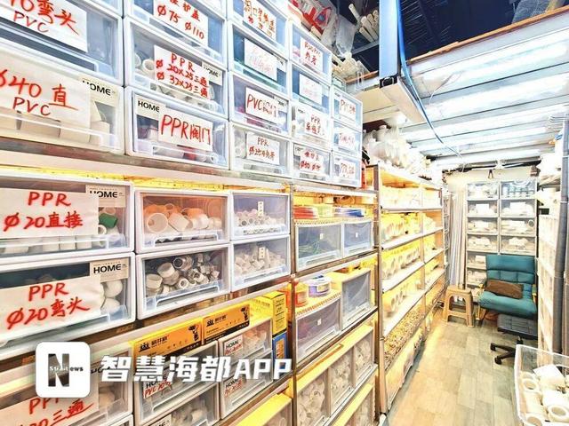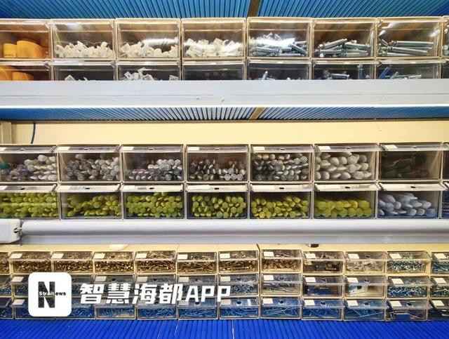 五金店内,数千个透明抽屉式收纳盒整齐排列