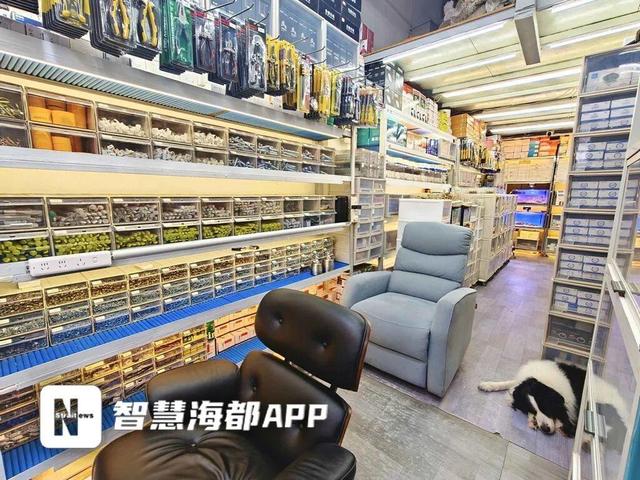 2日,记者走进这家总面积110平方米的两层店铺。一层是核心销售区,数千个透明抽屉式收纳盒整齐排列,从微小的螺丝垫片到各类工具配件,皆被分类归置,井井有条。二层则主要用于存放长管及部分库存。除了整齐的货架,店内还摆放了鱼缸,并配置了座椅,供顾客休憩。