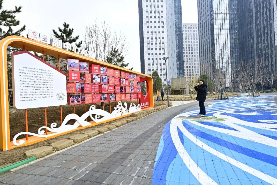 志愿实践区——手绘运河浪花步道,沿途展示副中心志愿风采并设立志愿者誓词广场,引导市民从“旁观者”转变为“参与者”。