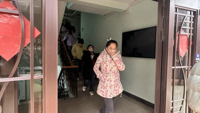 随后,全员转移至高层建筑开展火场逃生演练。宋然结合典型案例,详细讲解逃生路线选择原则,强调“熟悉环境、保持冷静、湿巾捂鼻、低姿前行”十六字要诀。随着急促的哨声响起,演练正式开始。参训人员迅速用湿毛巾捂住口鼻,弯腰沿墙有序撤离。现场分工明确:引导员驻守转角指引方向,协助员帮扶行动不便者,全体人员默契配合、紧张有序。逼真的场景让参与者身临其境,有效检验了社区应急联动水平,提升了自救互救能力。