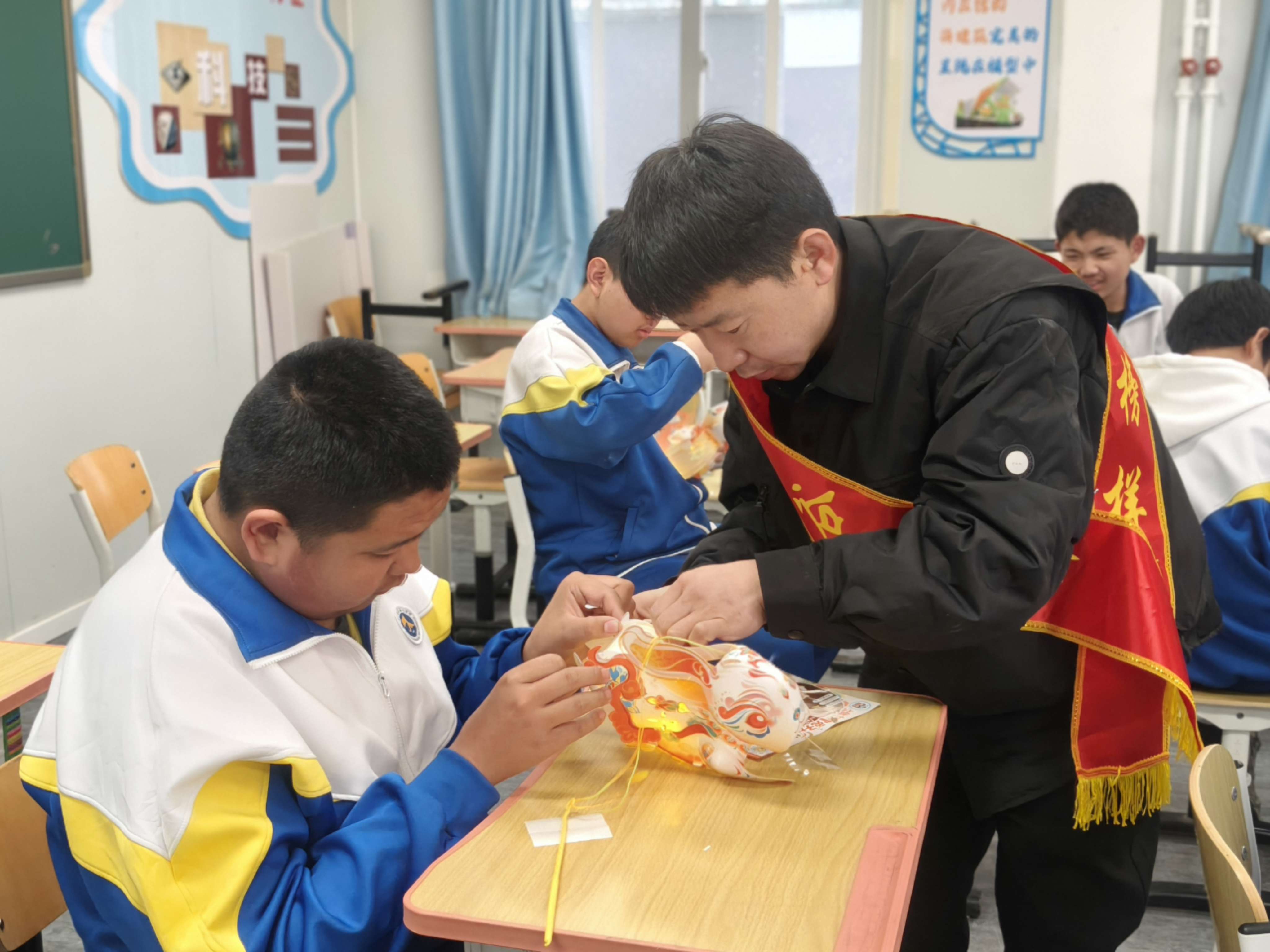 在民俗体验环节,“护苗先锋”与师生携手制作花灯、制作元宵。大家动手揉面团、包馅料、扎灯架、剪纹样,在亲手实践中感受传统技艺的魅力,教室中洋溢着团圆喜庆的节日氛围。穿插其间的民俗知识问答,让传统文化可感可学,进一步激发学生传承非遗文化的热情。