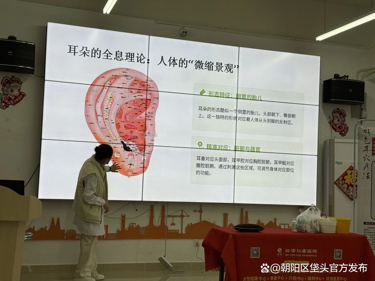 垡头街道祈东家园社区温馨家园开展“全民科学爱耳,共护听力健康”科普宣传活动,加强听力残疾预防,提升残疾朋友的听力健康水平。活动伊始,授课老师播放了《2026听见改变!从无声到有声》作为开场视频,让辖区残疾朋友客观地了解目前全国听障患者比例及政策落地实效。接着继续以视频方式为大家讲解耳部构造,从西医角度讲解致鸣、致聋以及康复治疗等科普知识。活动还邀请到了北京仁安医院中医科大夫,从穴位、经络角度为大家科普讲解耳部致鸣、致聋原因等中医耳穴理论基础知识,提供了相关的耳穴调理方案以及养生实操指南。随后,授课老师带领残疾朋友们做《耳保健操》,鼓励大家日常养成预防护耳习惯。活动最后大家有序进行着耳部义诊及贴耳豆、测血糖以及中医号脉等基础检测,现场互动踊跃,气氛温馨融洽。
