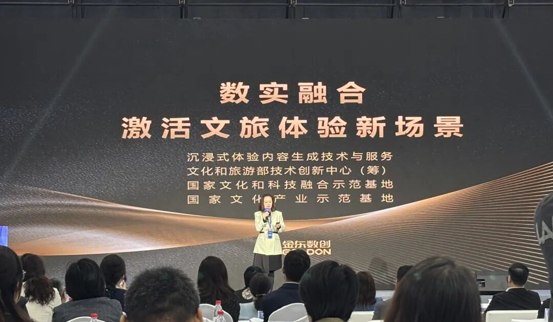 山东金东数字创意股份有限公司、青岛西海岸旅游投资集团有限公司分别作为山东文旅企业供给方和需求方代表上台推介,围绕智慧景区建设、沉浸式文旅项目打造等方面介绍实践成果、解读数字转型需求。