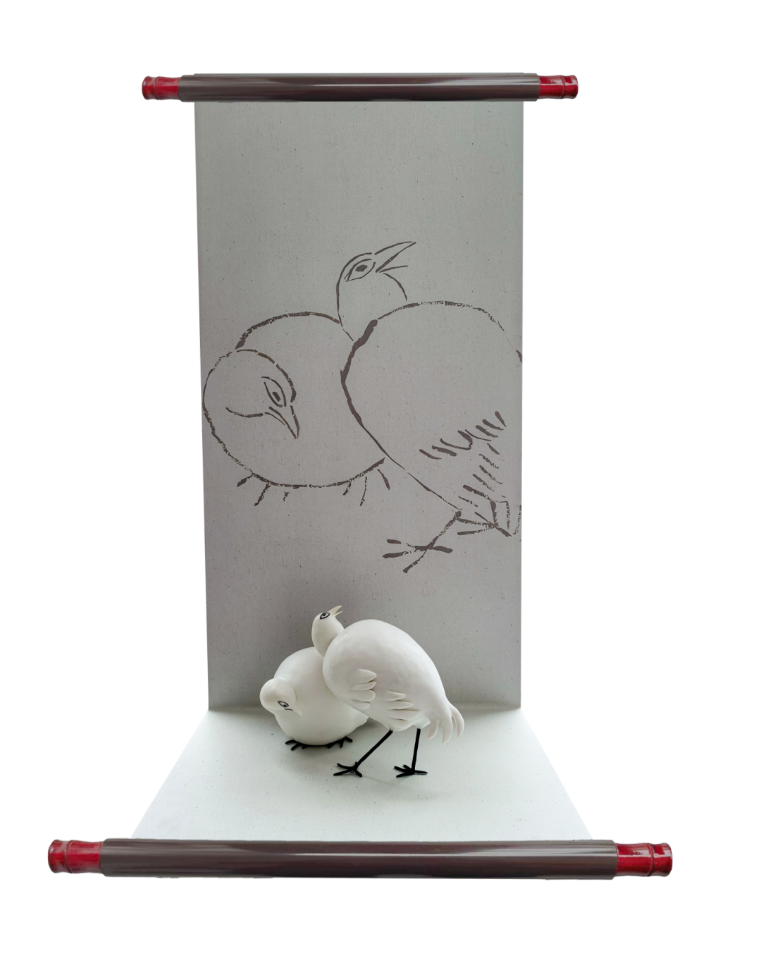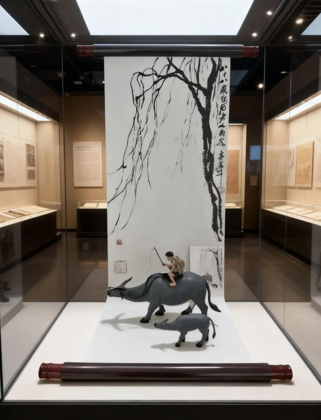 这一系列是极具创意和视觉冲击力的艺术产品,巧妙地将白石老人的卷轴书画艺术与立体的微缩场景相结合,创造出一种立体的画中藏境的独特艺术形式。