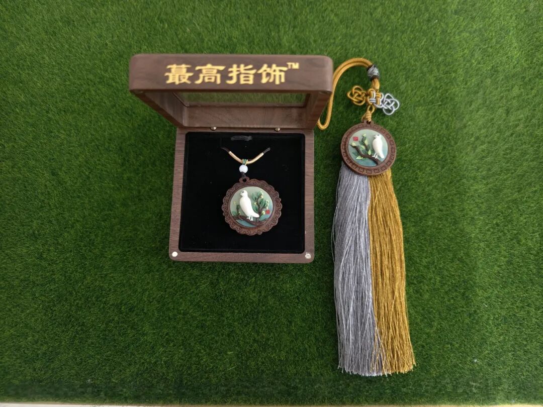 这个系列文创产品让国画的神韵从纸上跃出,点缀于颈项方寸之间,将风雅与生趣随身携带,作为车挂也增添一番趣味。
