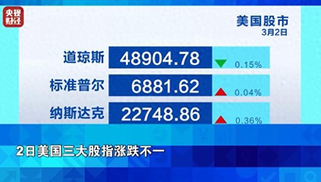 当地时间周一,中东局势骤然升级引发全球金融市场避险情绪升温,风险资产普遍承压,美股“恐慌指数”VIX飙升至去年11月以来新高,美国三大股指集体低开。因担忧能源价格上涨引发高通胀,进而阻碍美联储再次降息,消费、旅游休闲以及航空等类别股票普遍下跌。不过,在国防军工、科技股上涨的推动下,美国三大股指有所反弹,收盘时涨跌不一。截至收盘,道指下跌0.15%,标普500指数微涨0.04%,纳指上涨0.36%。