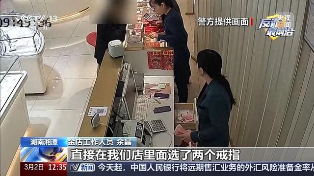 金店工作人员 余晶:当天早上一位男顾客进店,直接在店里面选了两个戒指,买单就走了。正常的顾客,进来之后会询问一下金价,看一下款式,这位顾客也没有挑款式。当时我们就起了疑心,因为平时公安局也做反诈宣传,所以就报了警。