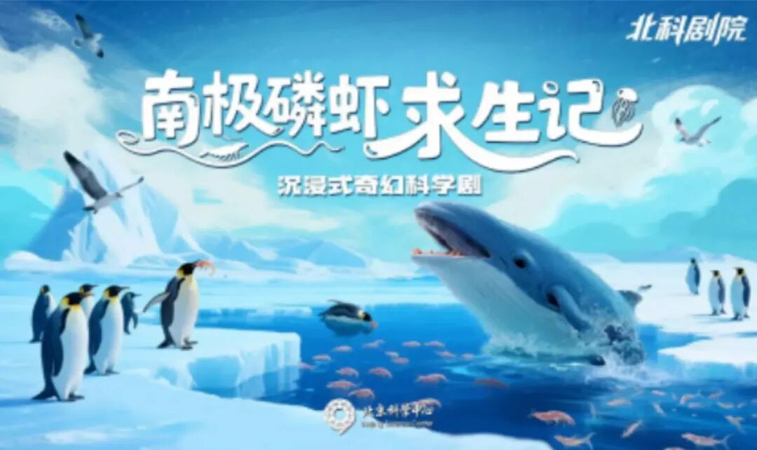 《南极磷虾求生记》奇幻科普剧:由国家自然博物馆专业戏剧志愿者倾情打造,以沉浸式剧情带领小观众走进冰封的南极世界,跟随一只小磷虾的冒险旅程,探索南极生态与自然平衡的奥秘。剧目融合科学知识与戏剧表达,寓教于乐,生动展现馆内志愿团队跨界融合、多元共创的专业风采,以及为公众提供高质量科普服务的坚实力量。