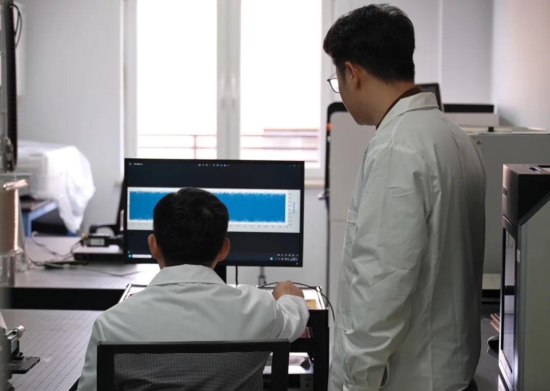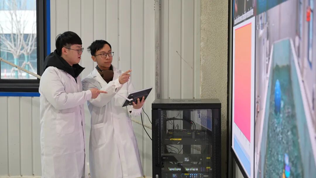 深海蓝色能源实验室里忙碌有序,科研人员们有的操控造浪球,造出不同研究需求的“海浪”,有的专注数据、调校摩擦纳米发电机(TENG)样机参数;电脑屏幕上,跳动的海试数据曲线,记录着每一次技术优化的痕迹。