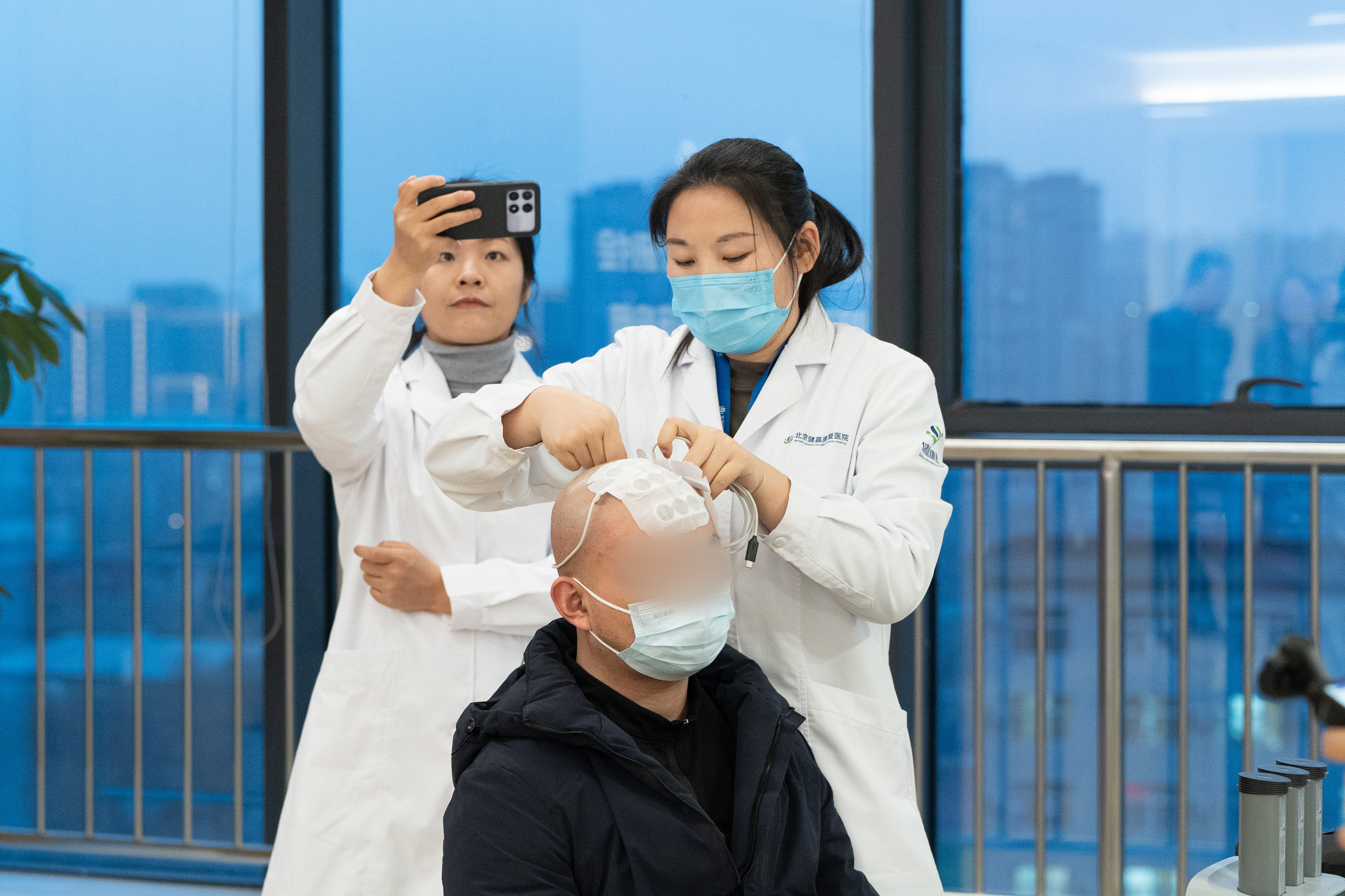 3月3日,在北京健嘉康复医院十层,医护人员手持设备,为患者擦拭头皮、精准粘贴电场贴片、固定医用网状头套、完成设备连接与启动,国产肿瘤电场治疗仪首例患者佩戴仪式在这里顺利进行,标志着我国自主研发的肿瘤电场治疗技术正式进入临床实际应用阶段,为脑胶质瘤患者的治疗与康复带来全新可能,展现了我国在神经肿瘤治疗领域自主创新能力的显著提升。