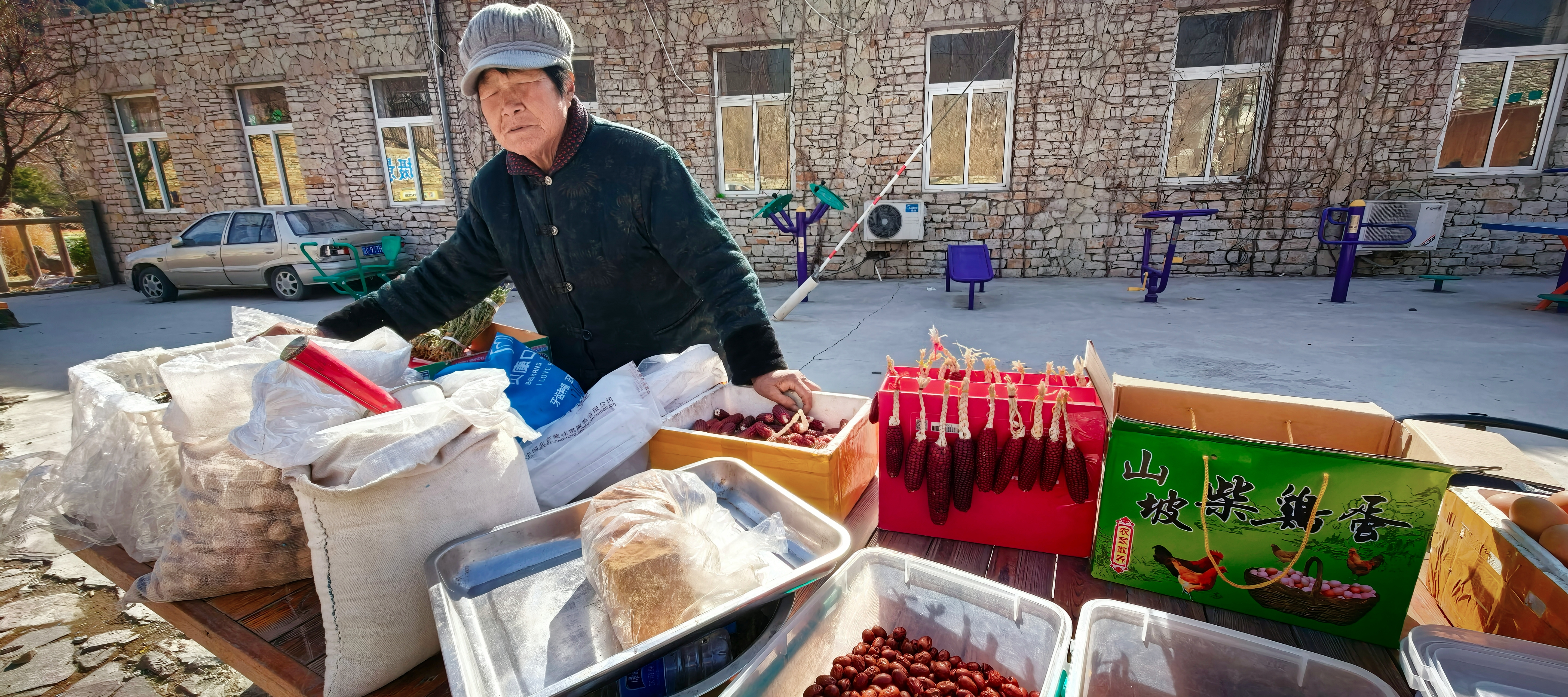 广场北侧主街,两侧村民摆着山货特产,烟火气十足。我花26元购得二斤炒黑豆,豆香醇厚,亦是山野滋味。与乡邻闲谈间得知,古村本名“石头村”,始于明末,由周氏家族拓基建村,四面环山,形似幽谷深井,故名“西井峪”。一砖一石,皆为山中之材;一巷一院,尽是百年传承。故此西井峪还曾被评为“中国历史文化名村”和“中国传统村落”。